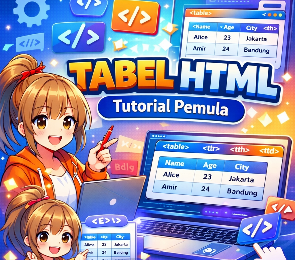 <thead>– mengelompokkan header tabel.<tbody>– mengelompokkan isi utama tabel.<tfoot>– mengelompokkan ringkasan atau total.<caption>– memberikan judul pada tabel.colspan– menyatukan beberapa kolom menjadi satu sel.rowspan– menyatukan beberapa baris menjadi satu sel.classatauid– berguna untuk styling dengan CSS atau targeting JavaScript.